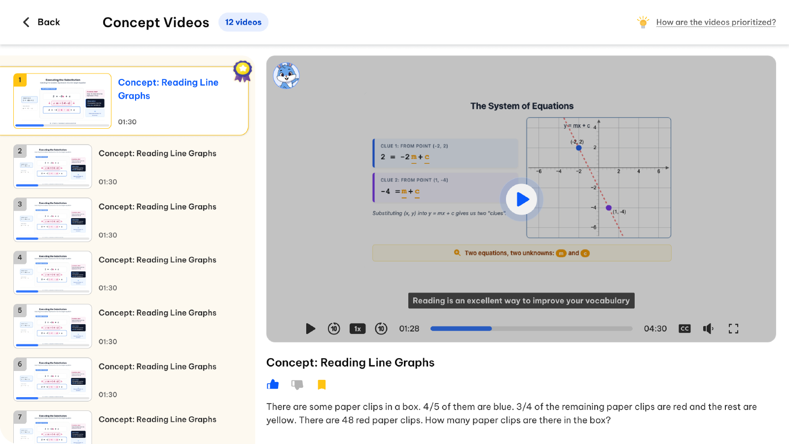 Conceptual videos will soon include built in checkpoints that pause the lesson to test understanding. At these checkpoints, students will complete short curated activities to reinforce the concept before moving on.
